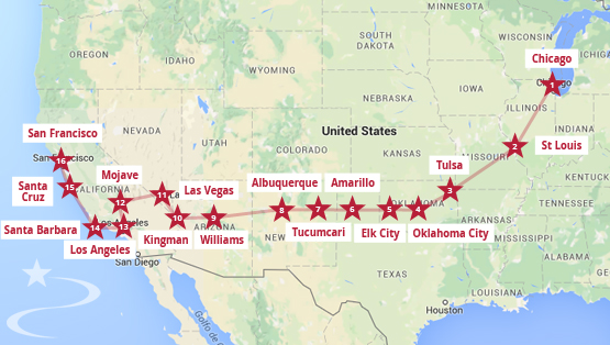 Route 66 Including Highway 1 22 Days Itinerary From Downtown Chicago Ocean California